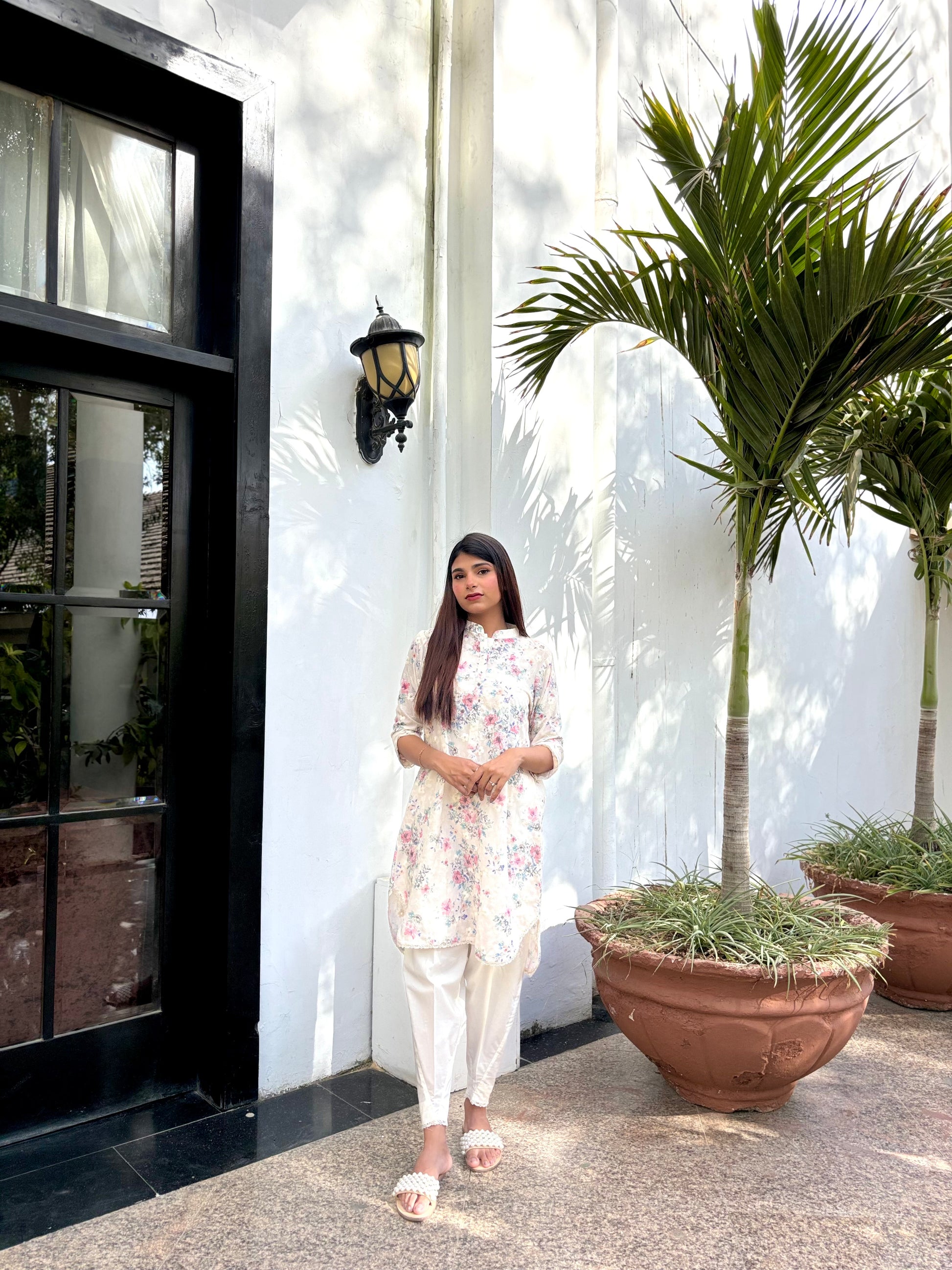 Elegant and timeless featuring a floral embroidered 2-piece set paired with a plain shalwar, crafted in premium Bareeze cotton material. Perfect for an effortlessly chic look this season.