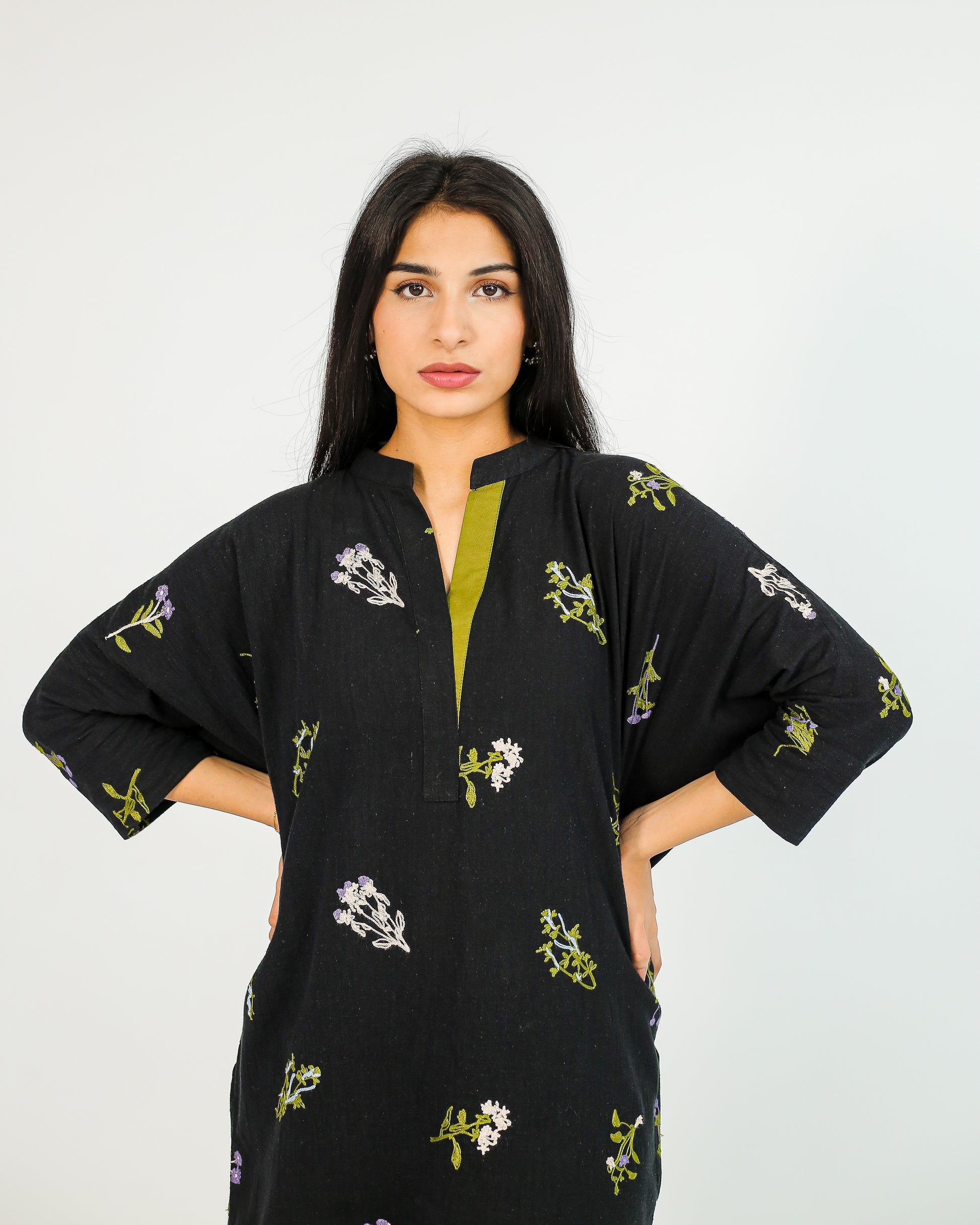 Noir Essence – Embroidered Cotton Kurta